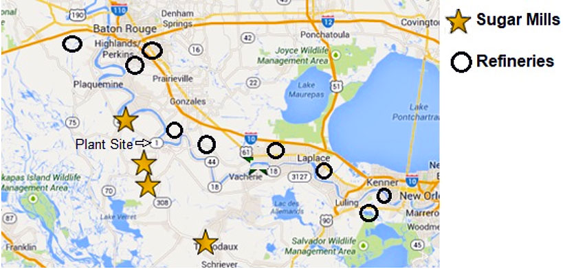 The future plant site is in between three largest sugar mills and four crude oil refineries, which are the largest buyers of fuel grade ethanol.